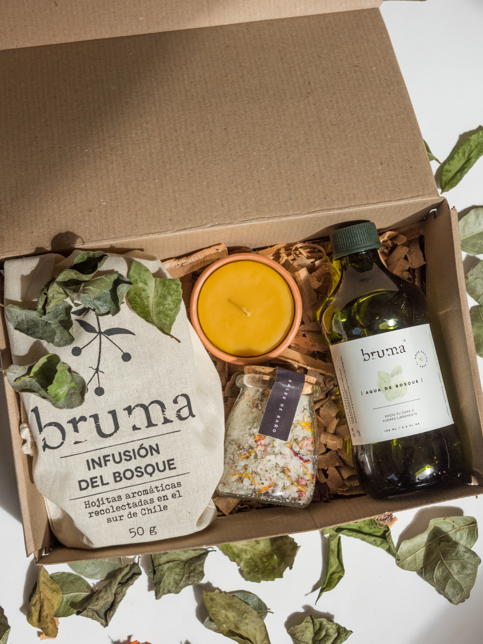 Una caja llena de tesoros para sumergirse en una experiencia sensorial con toda la magia de los bosques del sur. Solo necesitas llenar tu tina, seguir nuestro ritual y dejarte envolver por los aromas nativos, la música y el fluir del agua.