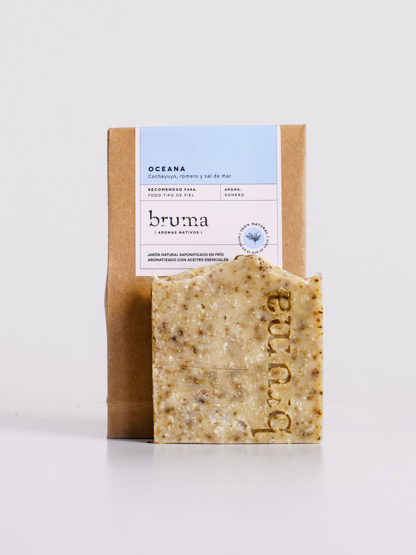 botánicos, cochayuyo (alga marina) y sal gruesa de Cáhuil, perfumado con